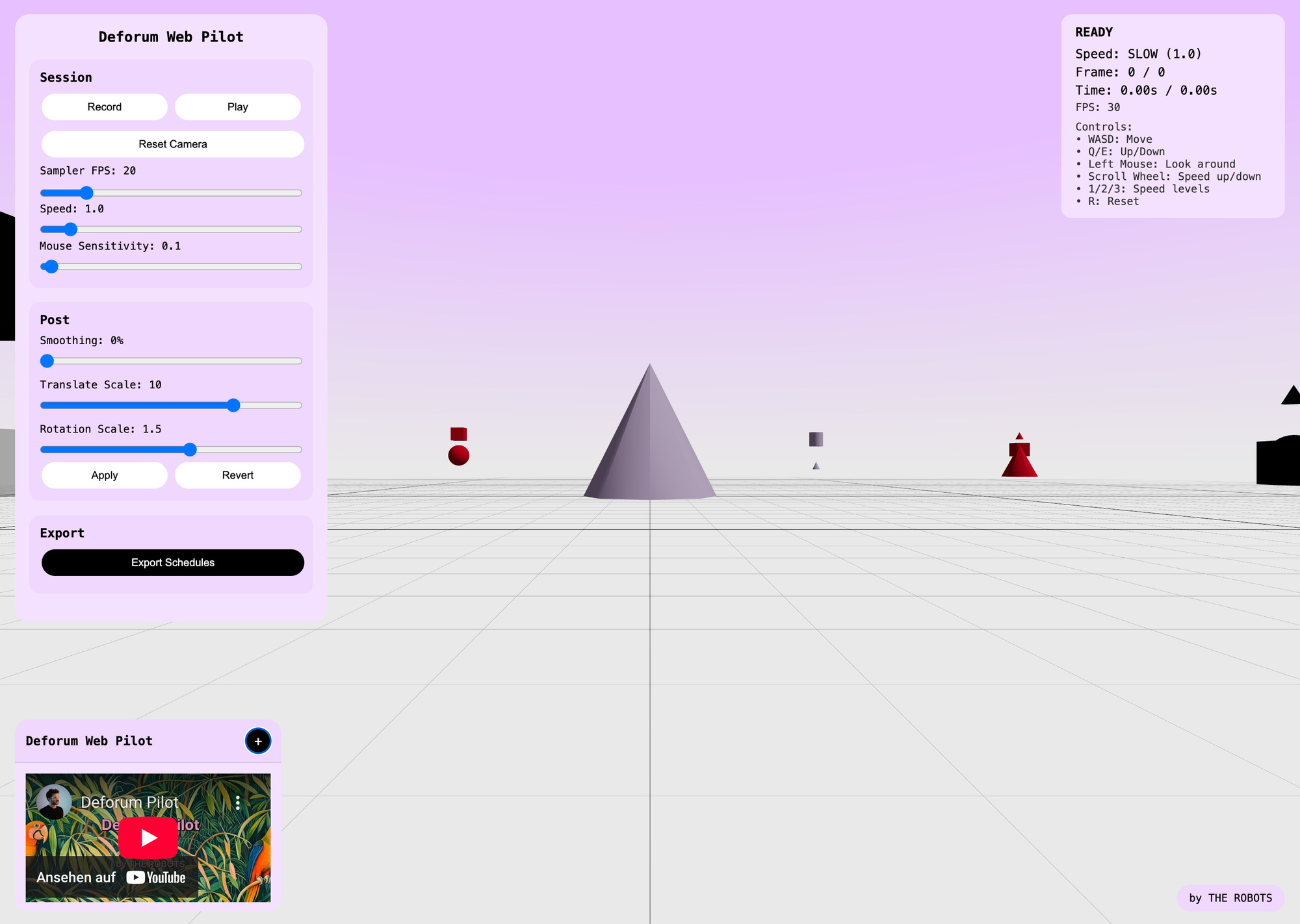 This week I created a website which lets you record a 3D camera movement which you then can import into Deforum.