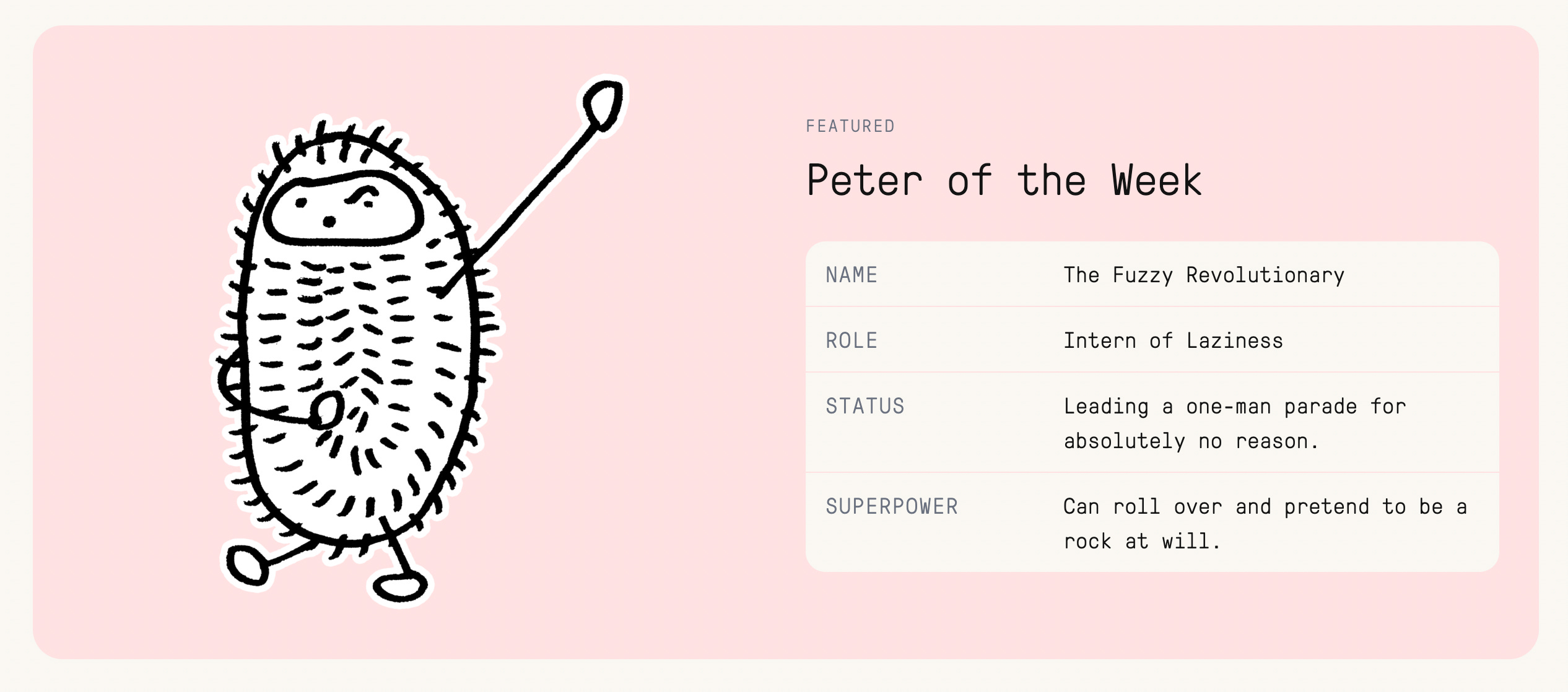 Peter. A tiny companion for a big, complicated world.