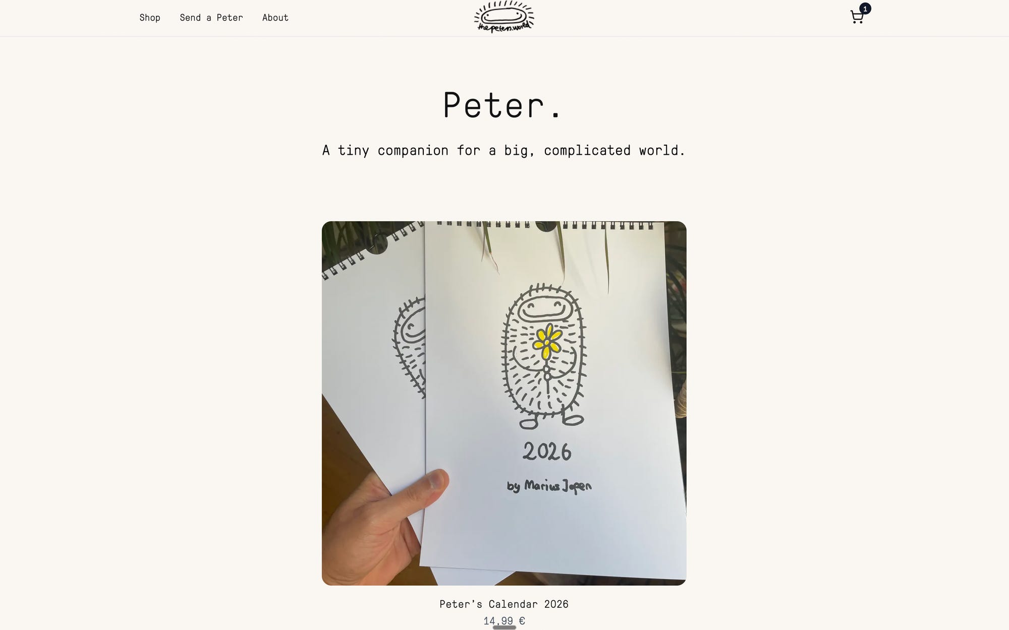 Currently I am selling there only the new 2026 Peter calendar. But I will add more items soon like t-shirts, baby-stuff, books, pillows, books etc.